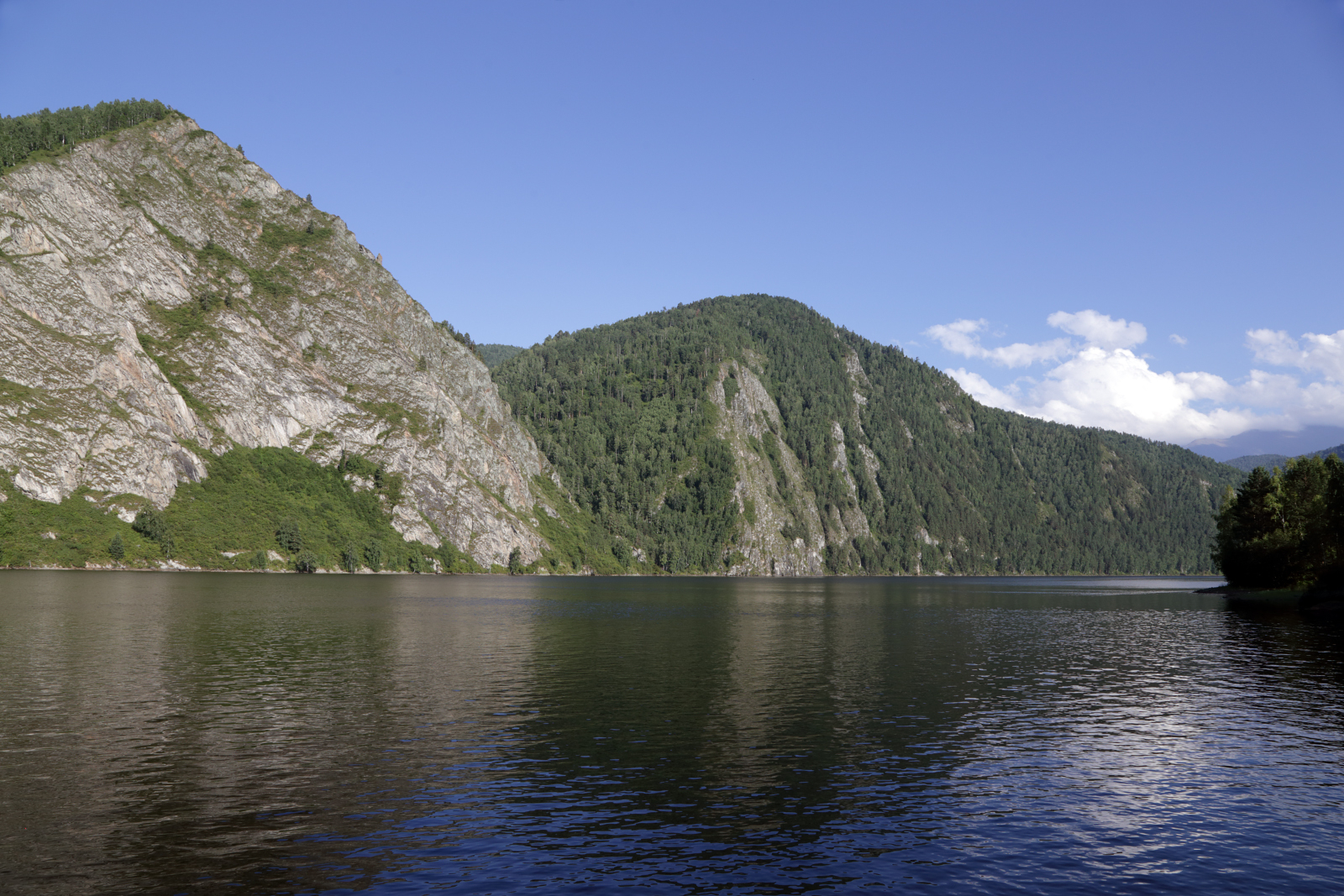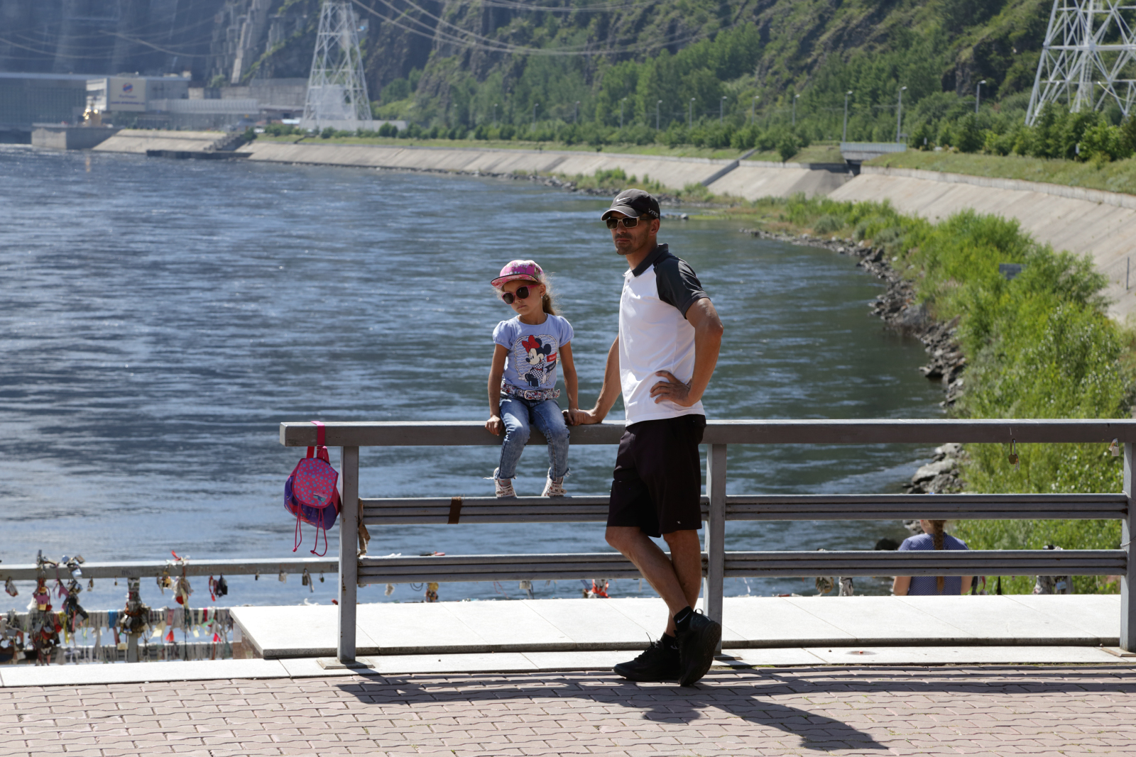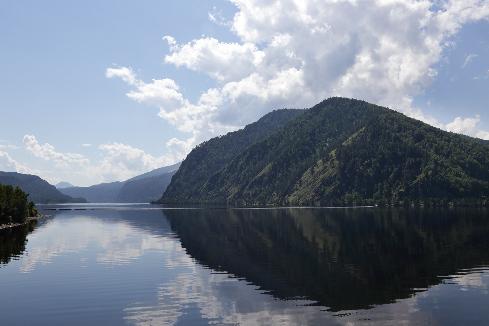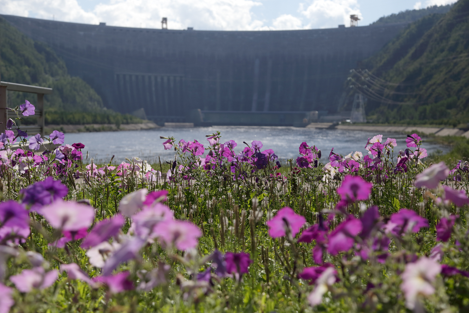 Еду дальше. Миную Саяногорск — чистый, просторный городок. ГЭС всё ближе, теперь дорога начинает петлять вдоль гористого енисейского берега