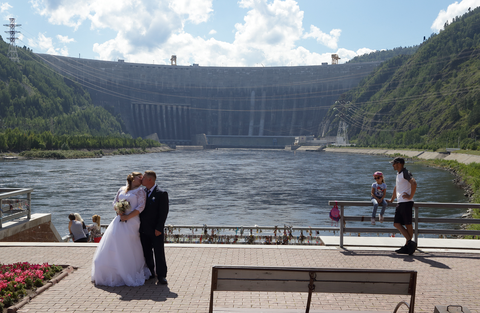 Преодолеваю последние 12 километров, и наконец — она, Саяно-Шушенская! Пока кручусь с фототехникой, догоняет свадьба с Майнской
