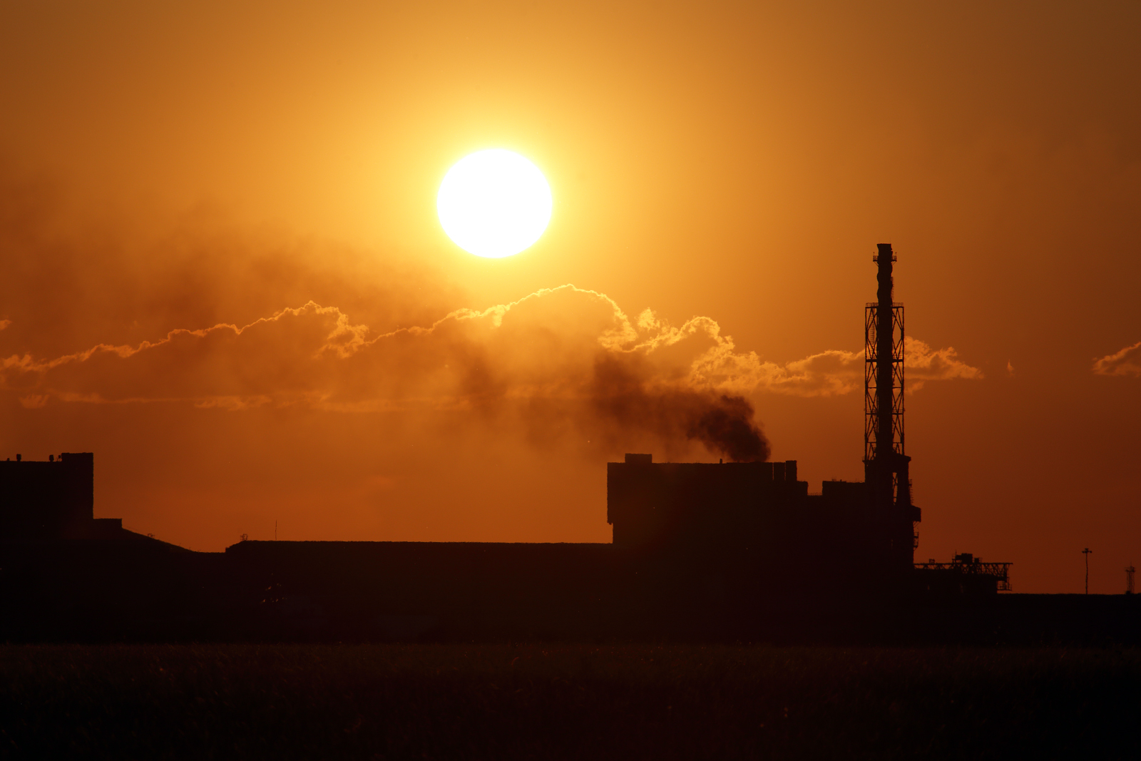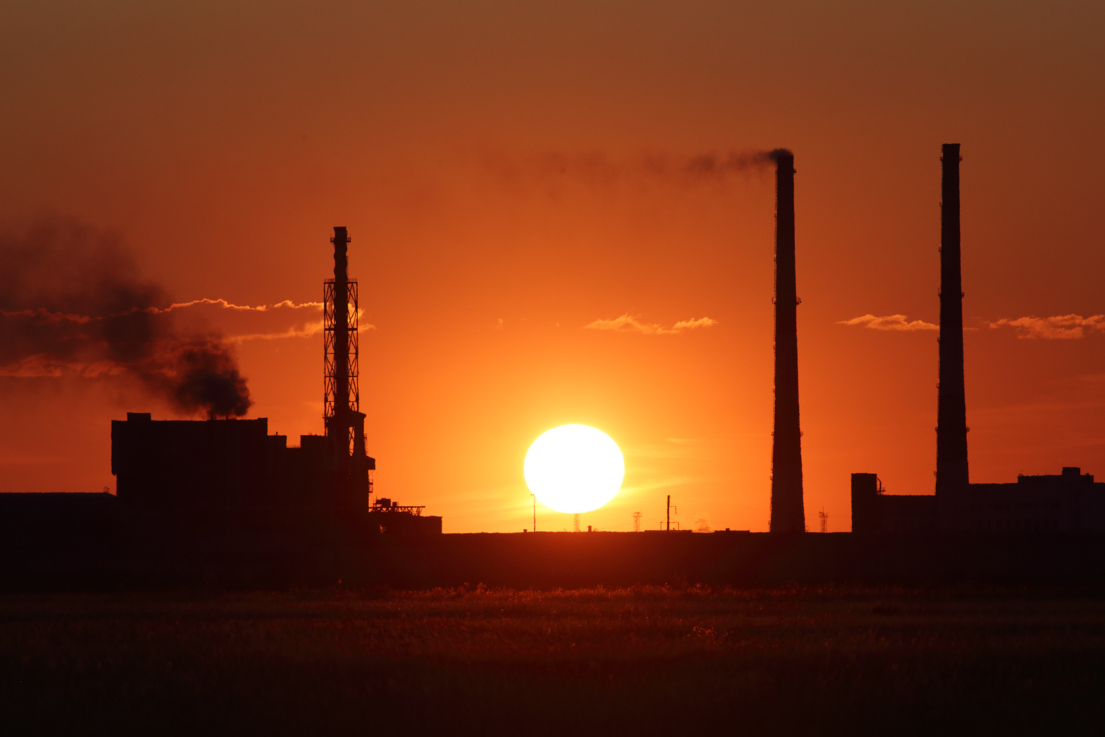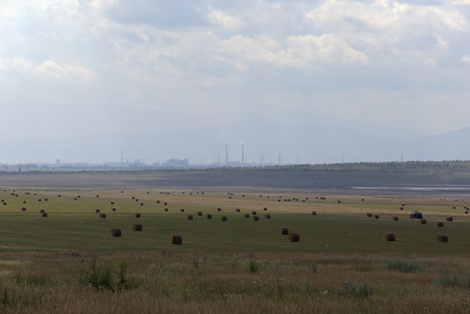 Прикинул, что закат буду снимать в степи. Должно быть красиво. Потом сообразил — завод! Трубы, степь, солнце на ясном небе. Должно что-то получиться. Подъезжаю к заводу. По степи ползут трубы отопления: видимо, от заводской ТЭЦ питается и город