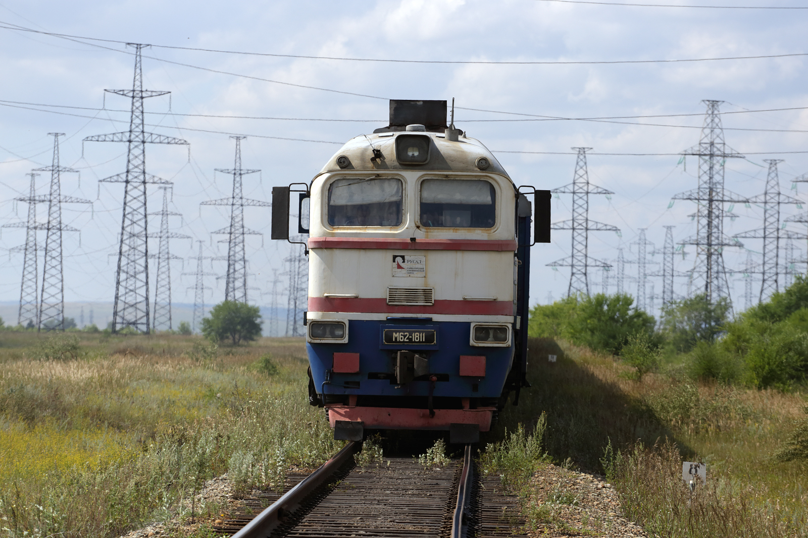 Очень необычная транспортная система. Из Саяногорска к заводу идёт совершенно независимая железнодорожная ветка, по которой ходит «электричка» — тяни-толкай из двух тепловозов и нескольких вагонов. Тут всё необычно!