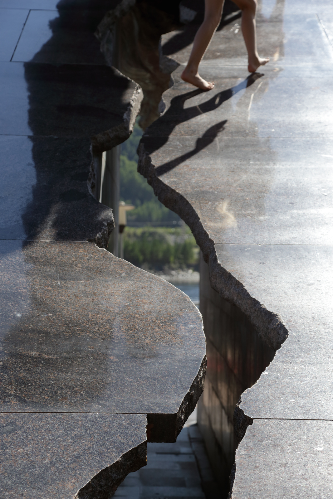 Это тут устроена смотровая площадка с памятником строителям СШГЭС. Дальше ходу нет, пропускной режим. К большому сожалению, сделано всё это действительно далеко от самой плотины, целых полтора километра. Поэтому мощь станции не воспринимается так, как возле Красноярской: у той плотина более низкая, но можно подойти на 500 метров, и слышен гул.