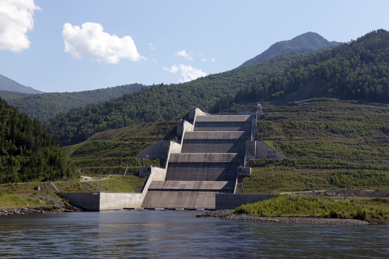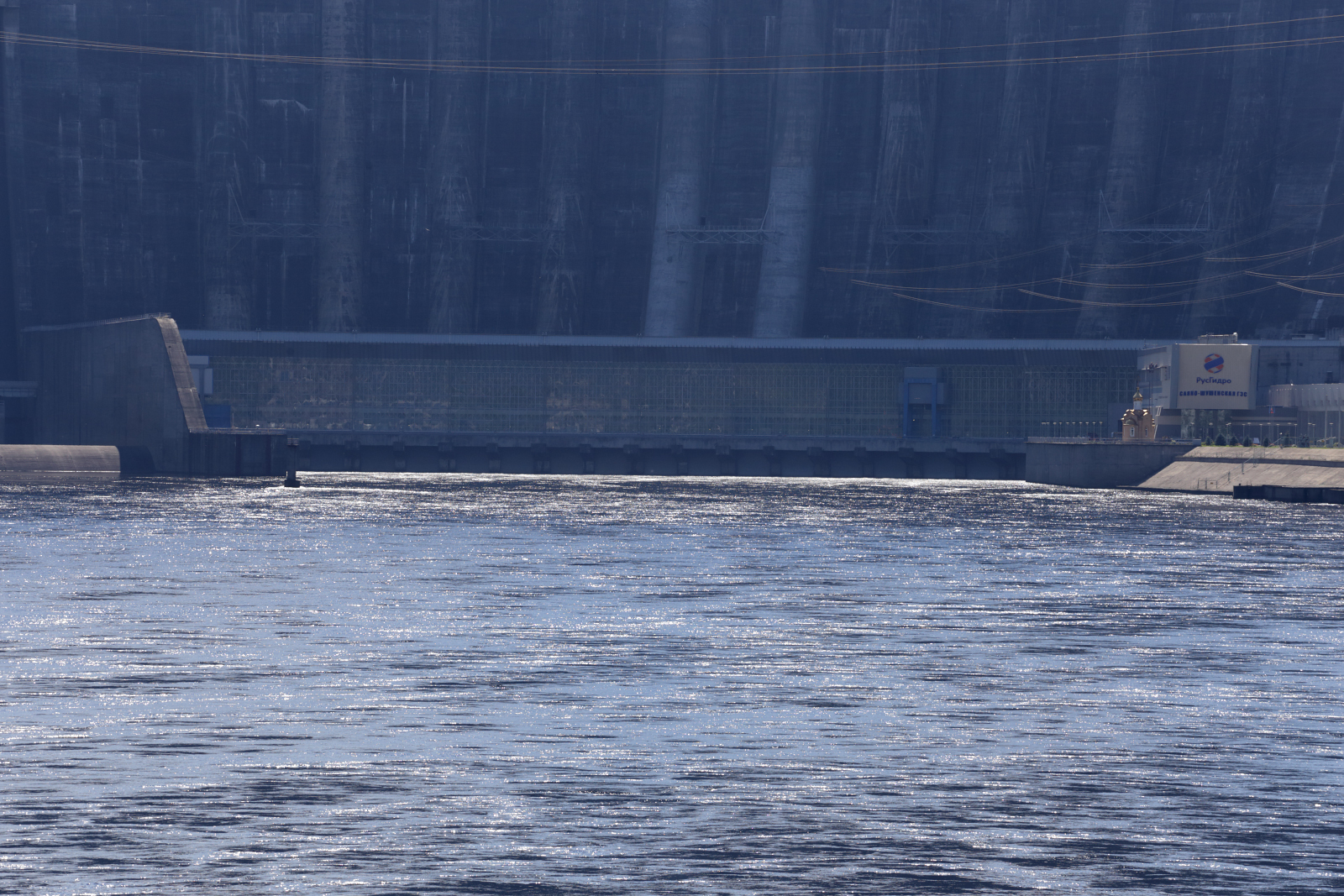 На самом деле, это система из двух ГЭС — старшая Саяно-Шушенская и младшая Майнская. Она выполняет функцию контррегулятора для старшей. Через её плотину проходит дорога. Останавливаюсь, наблюдаю эту красоту: