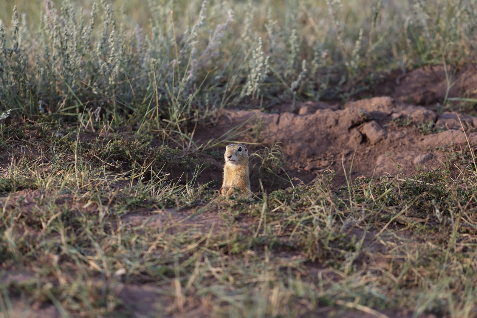 Едешь через степь, прыгают под колёса суслики. Нырьк в норы, и не видать! А этот один смелый, попозировал мне немного