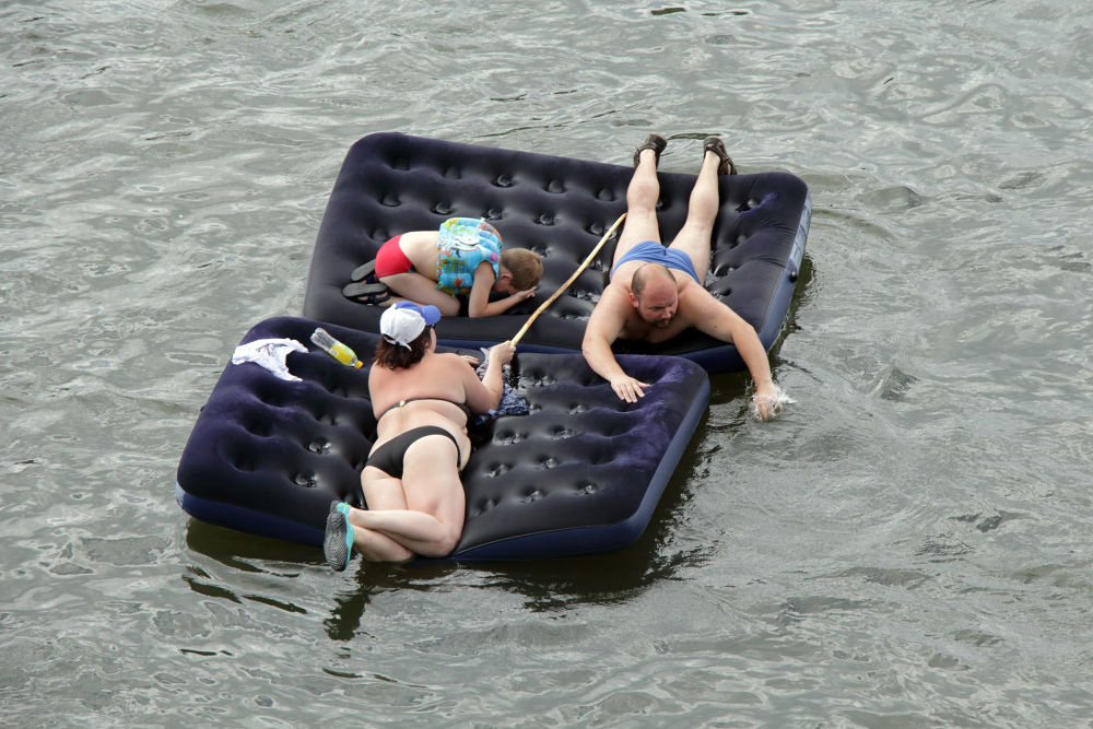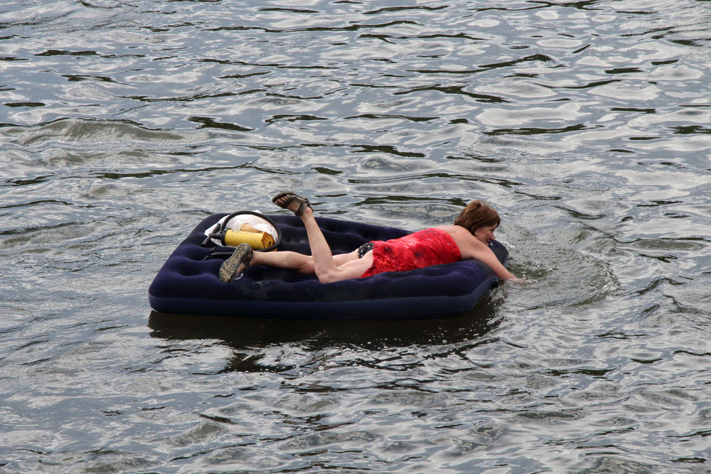 У местных развлечение: сплавляться по этой ледяной и неуютной Мане. Я простоял на берегу с полчаса, и мимо меня проплыло много замечательного народа. Дети, само собой, безо всякого сопровождения. Тут как-то проще
