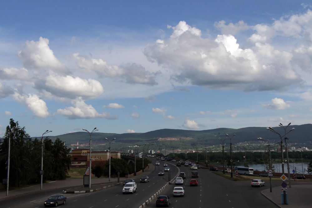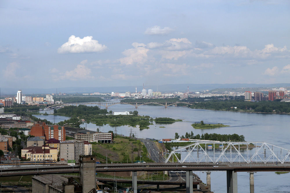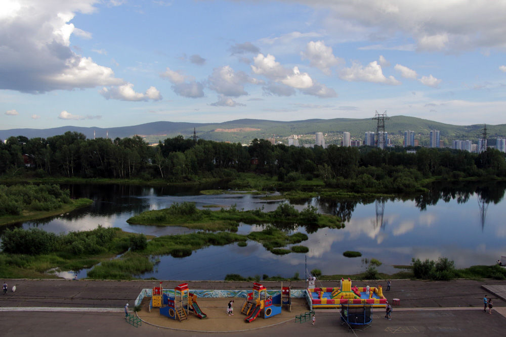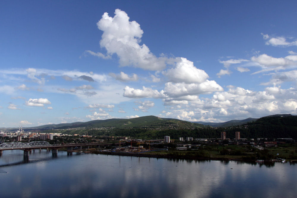 Доминанта Красноярска, конечно, река Енисей. В этих местах ещё не такая широкая (хотя по европейским понятиям, весьма и весьма широкая)