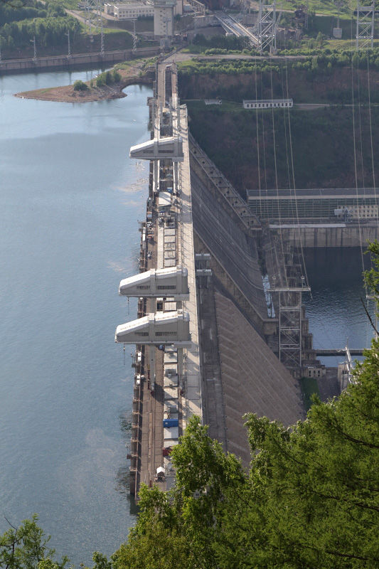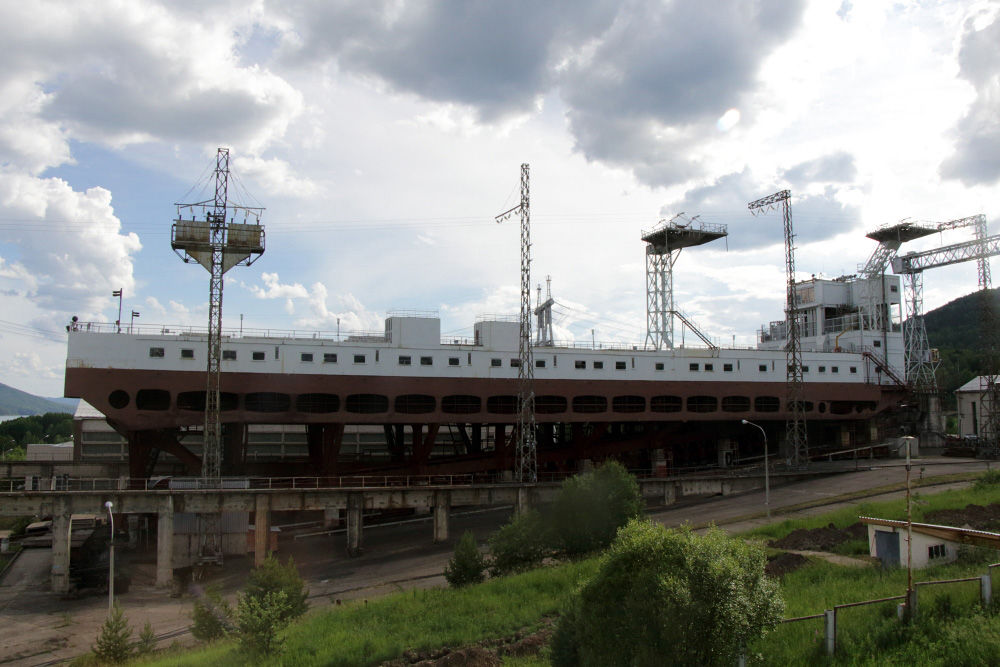 Ну, а теперь пару слов об уникальном судоподъёмном устройстве (почитать кратко тут: https://ru.wikipedia.org/wiki/Судоподъёмник_Красноярской_ГЭС). Оно предназначено для провода судов через ГЭС. Системы шлюзов там нет, поэтому советские инженеры построили этот уникальный лифт для речных судов.