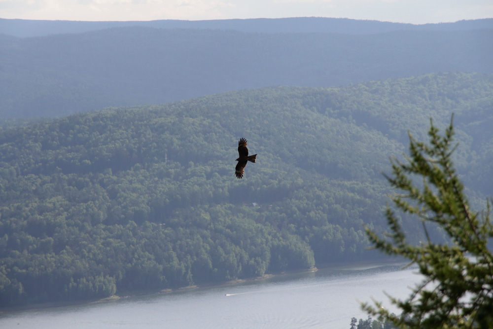 В горах и возле вдоль Енисея много орлов. Больших, настоящих!