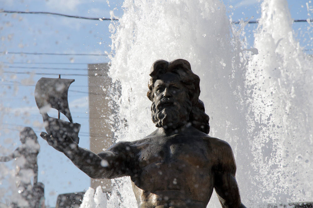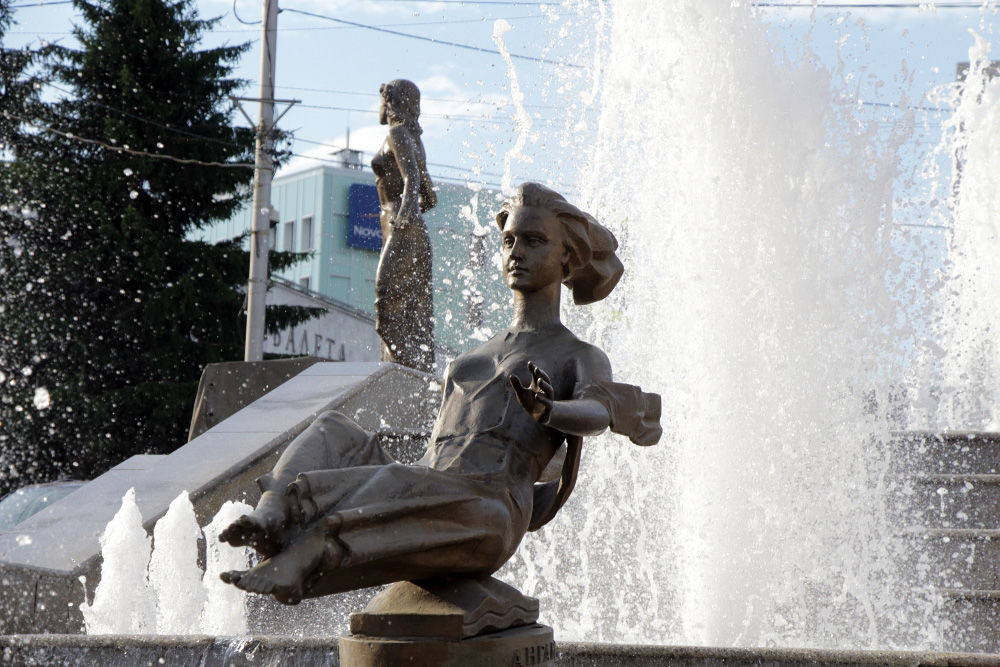 В центре есть интересный фонтан: скульптурная композиция, центром которой является Енисей, а по бокам его притоки-реки, выраженные фигурами девушек