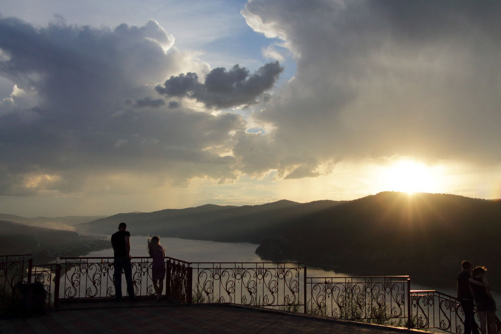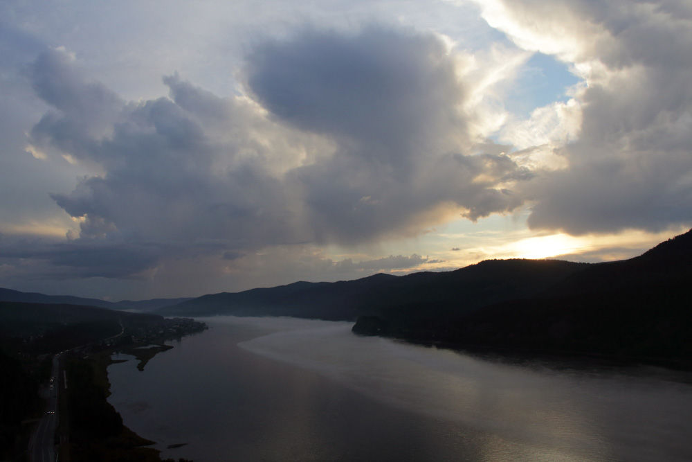 Несколько фотографий вечернего Дивногорска. Тут Енисей совсем узкий.