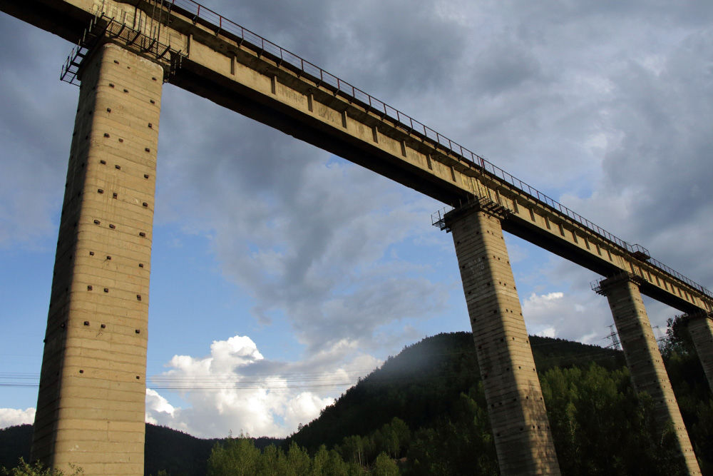 Этот акведук был построен для железной дороги во время строительства ГЭС. Сейчас по нему проложены трубы водопровода
