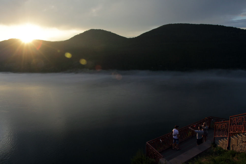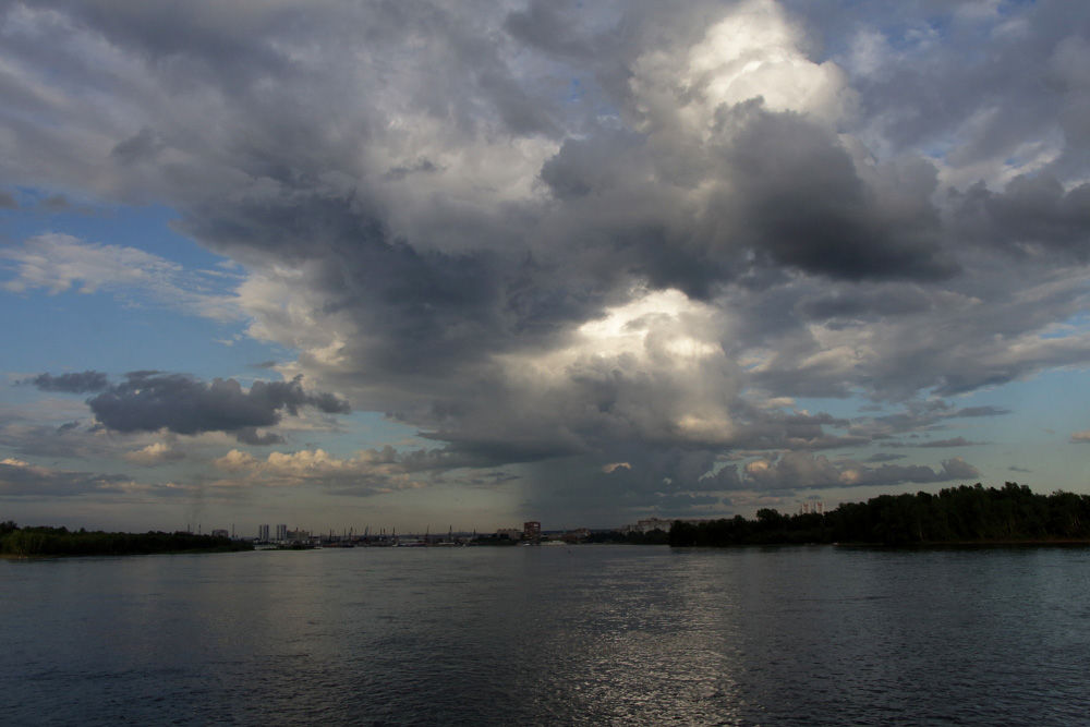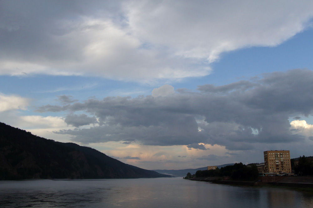 Вечером на Енисей волнами спускаются туманы (тёплый летний воздух соприкасается с очень холодной водой)