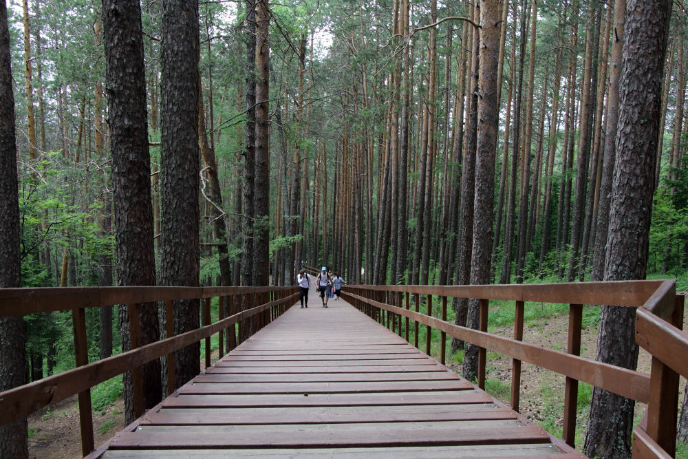 Я оставил машину возле главного входа (ориентир — ул. Свердловская, 140) и пошёл в сторону кордонов. Идти 7 километров и чуть вверх (пару сотен метров). Асфальтовая дорога. Есть обустроенные места стоянки, информационные стенды. В-общем, весьма комфортно. Как бы музей под открытым небом