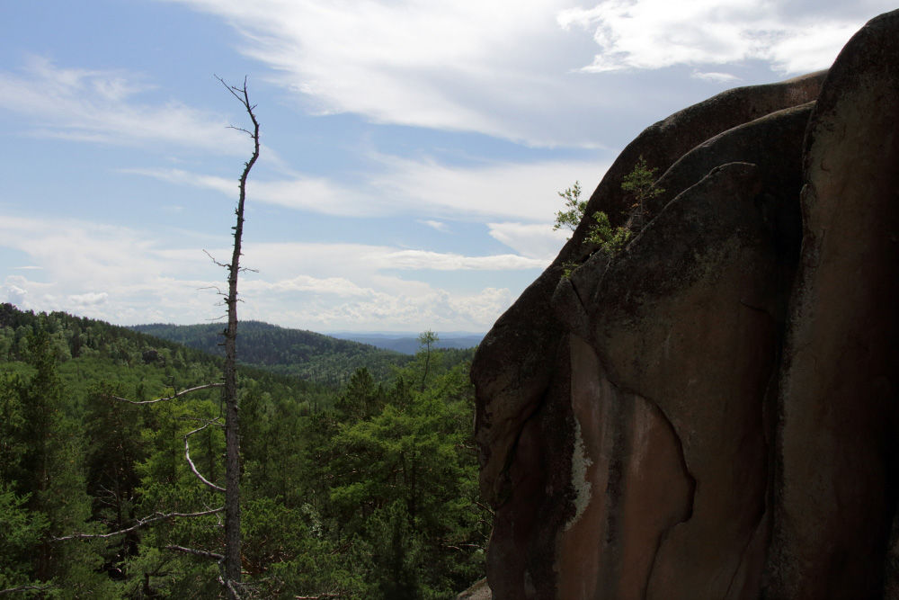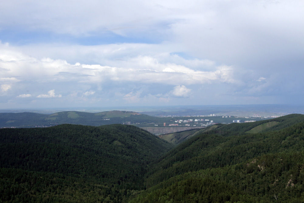 Красноярская природа удивила. Поскольку никогда раньше тут не был, ожидал сплошную тайгу. А на деле первая ассоциация была «так это же Швейцария!» Горные склоны, поросшие лесом и травой, зелень разных оттенков.